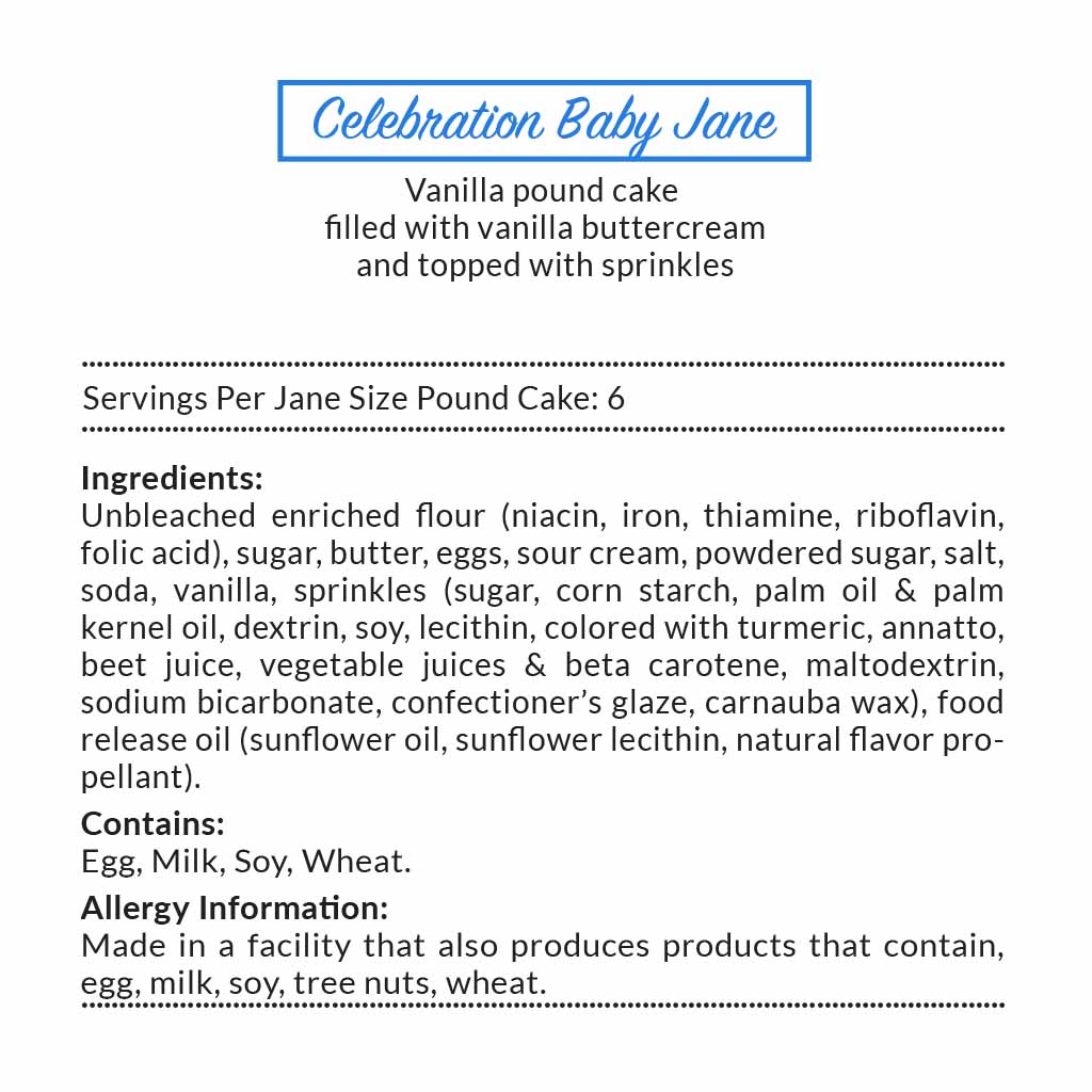 Party ready pound cake with sprinkles. A smaller take on our Celebration Jane.