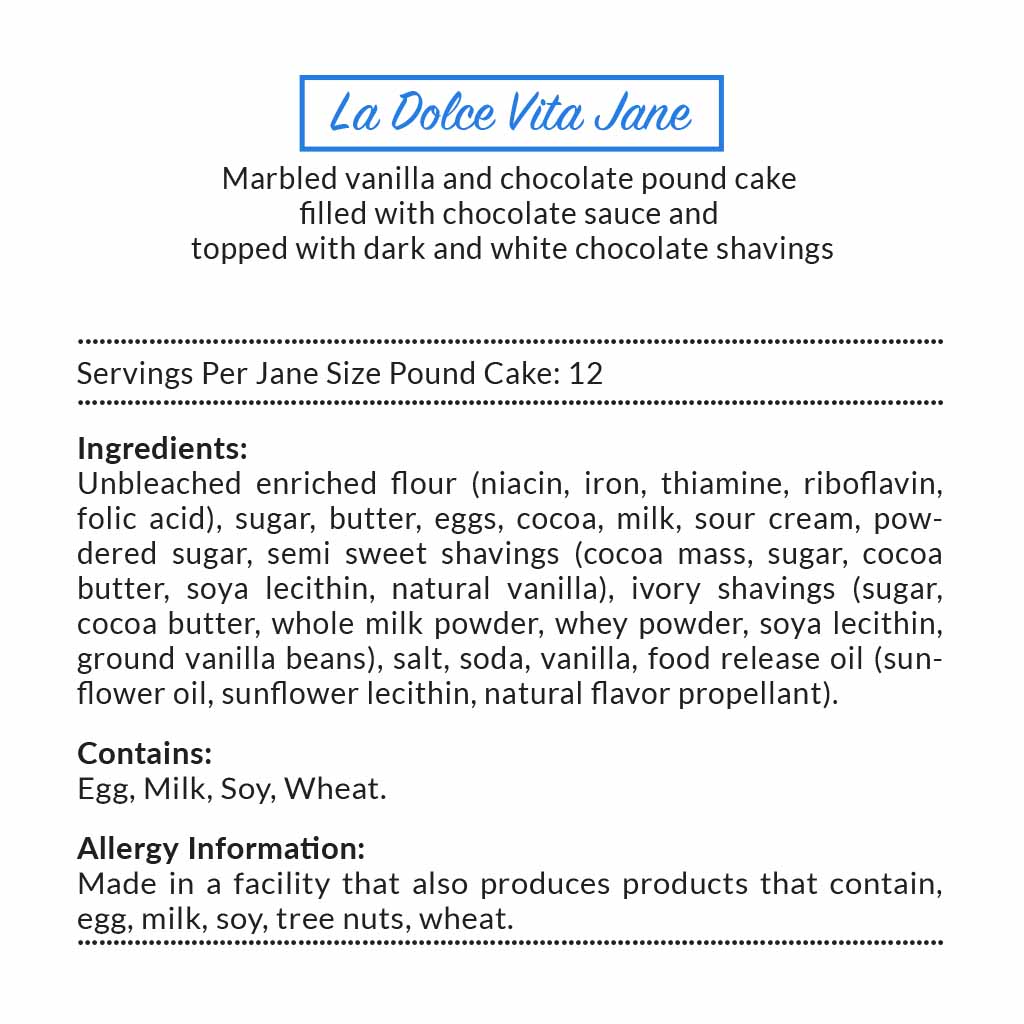 - Every Janie's Cake is packaged in our signature yellow and white striped box with a blue ribbon.