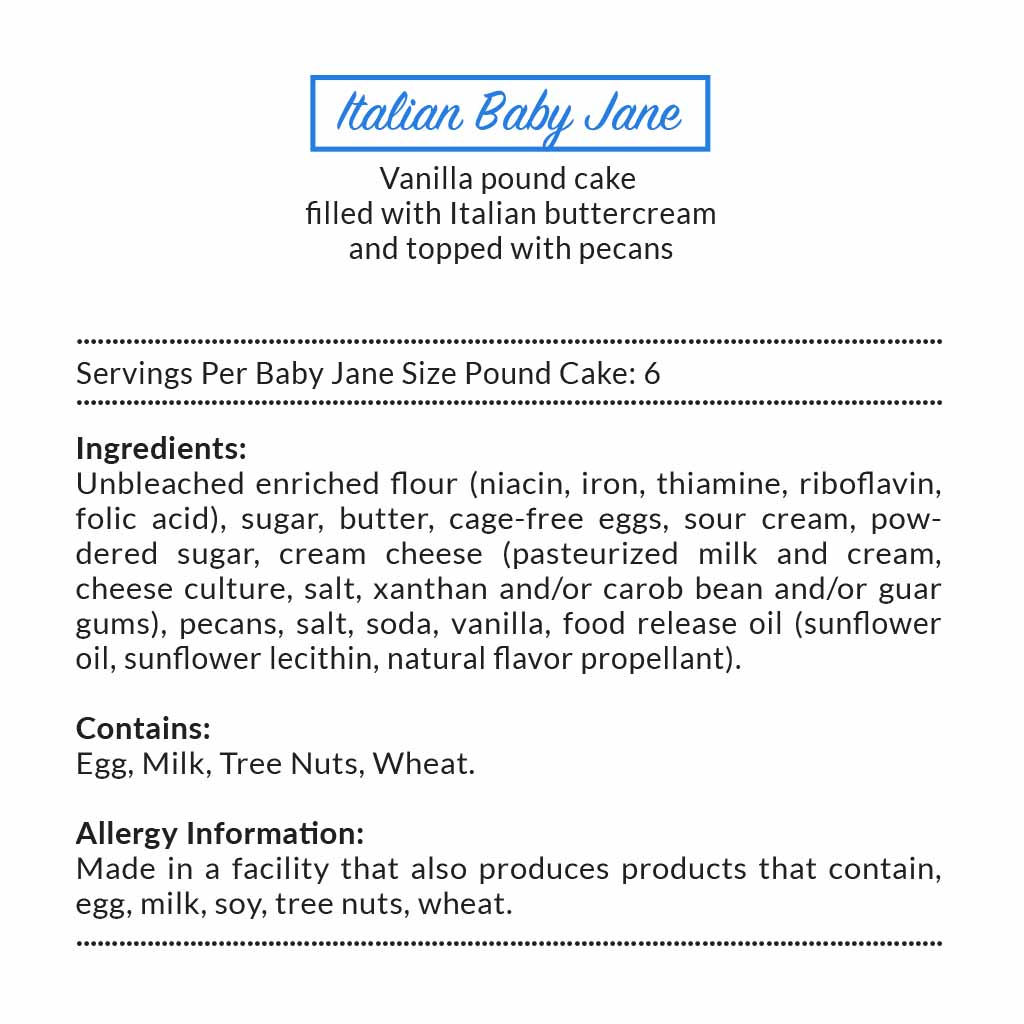 Enjoy everybody's favorite but slightly smaller -- our Italian Baby Jane.