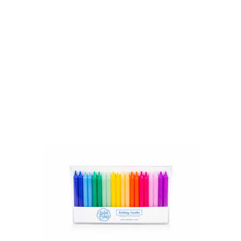 Birthday candles in a rainbow of colors.