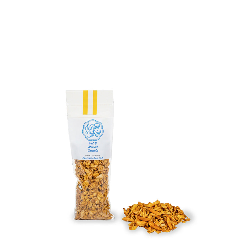 Janie's Oat & Almond Granola is featured as a topping on our Cinnamon Jane pound cake.