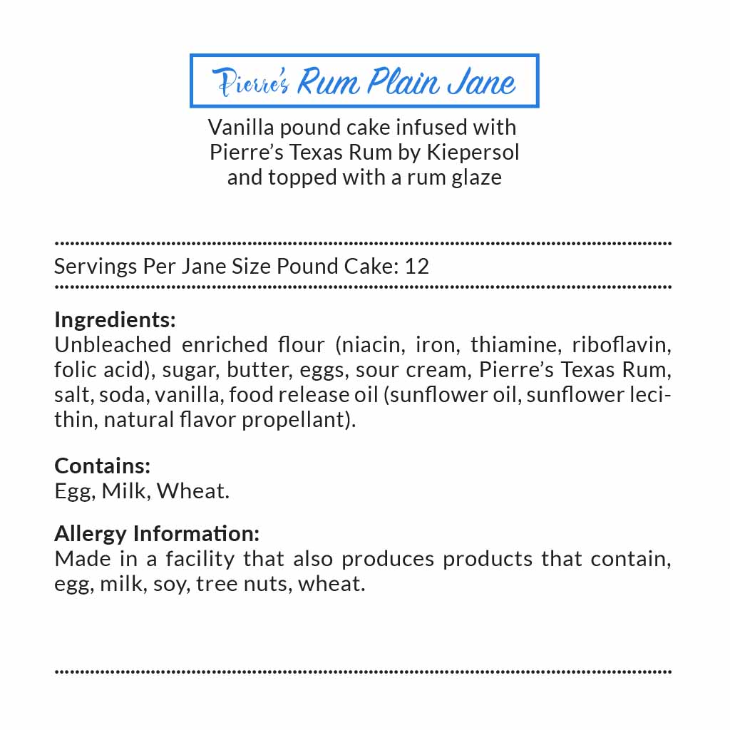 Artisan made, glazed by hand, rum infused pound cake.
