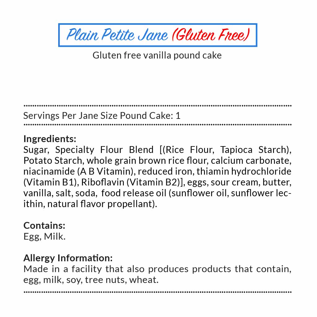 The smallest portion of our popular Plain Jane gluten-free pound cake.