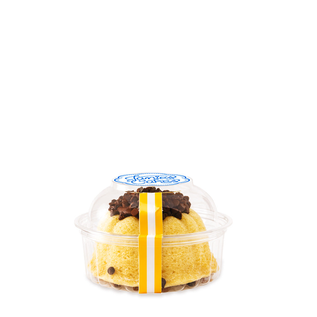- Packaged in a clear container that is sealed with Janie's Cake logo and yellow and white striped stickers.